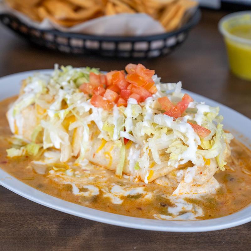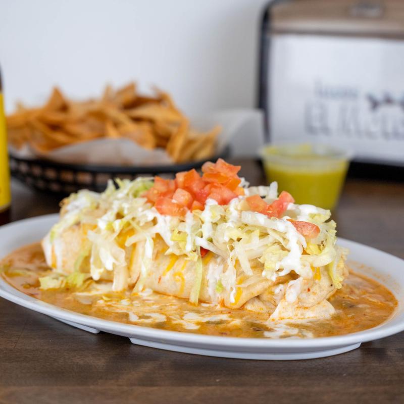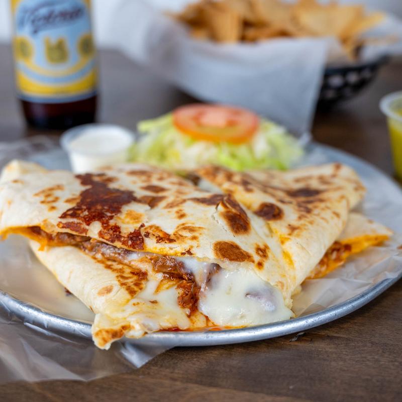 Flour tortilla, choice of protein, whole pinto beans, mozzarella cheese, onions, cilantro, tomatillo salsa. Add rice for extra.