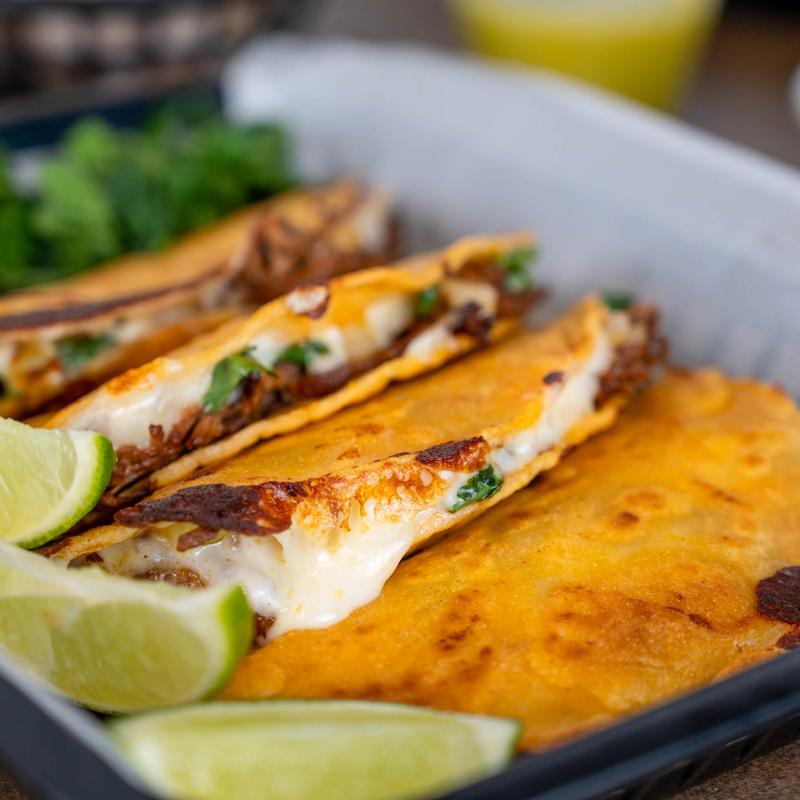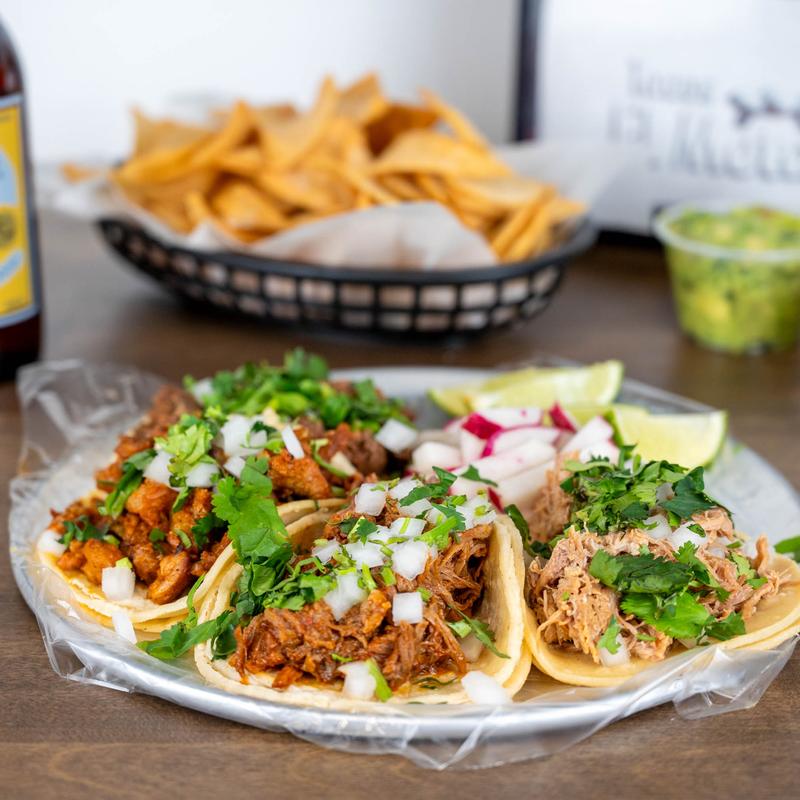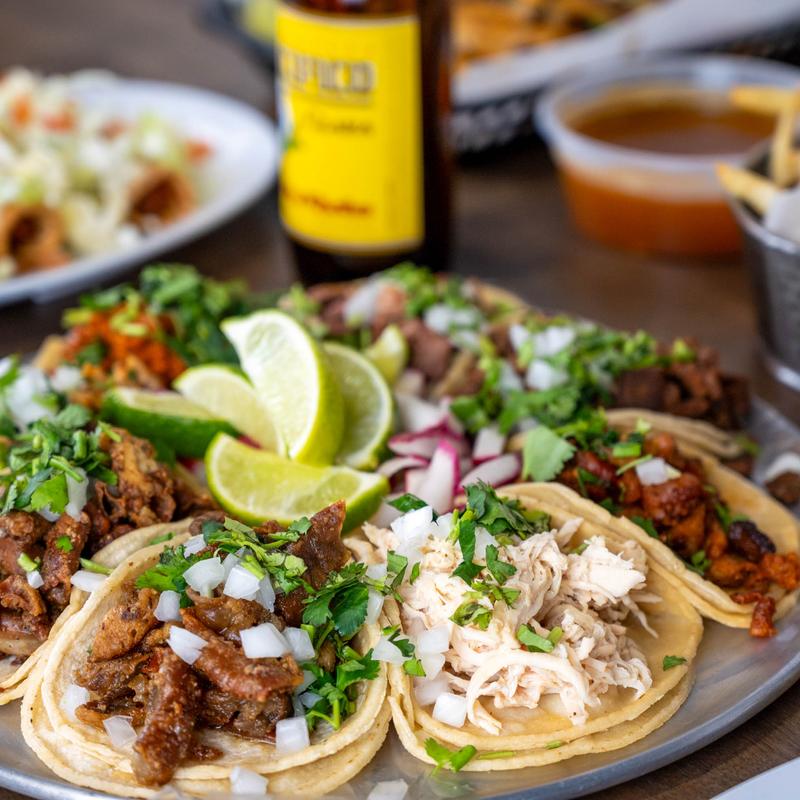 Choice of protein served on double corn tortilla, garnished with onions and cilantro, and a side of limes and radish. Add a Chile relleno for extra!